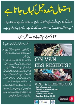 a un dels principals impediments per fer arribar les idees que volíem transmetre. El desconeixement dels idiomes oficials de Catalunya per part dels nous veïns i veïnes representava un obstacle. Vam decidir, per tal de facilitar la comprensió de l’exposició i que tots el veïns del barri poguessin llegir-ne el contingut, traduir els texts en les llegües estrangeres que apleguen un major nombre de parlants al barri: urdú, wòlof, rus i àrab, totes elles llengües extracomunitàries. Una forma d’implicar els veïns extracomunitaris en l’exposició va ser adreçar-nos a les seves entitats per a que en fessin la traducció dels texts de l’exposició. En aquesta tasca ens va ajudar la FUNDACIÓ CEPAIM.