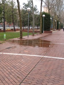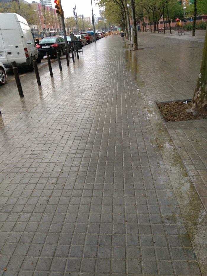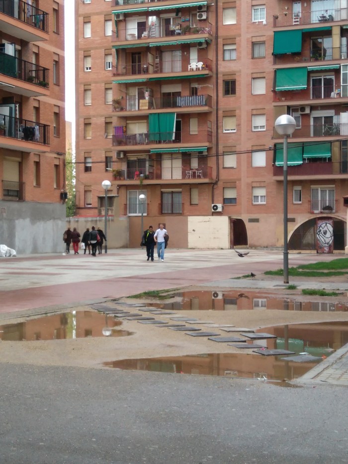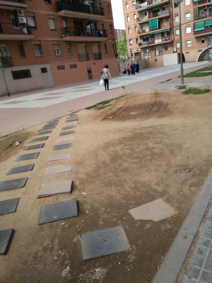 La zona més concorreguda del barri, l’entorn de Diagonal 6-10, presenta un estat tercermundista i amb l’excusa de que és una zona privada no fan cap actuació. Això si, fan el traçat d’un carril bici en aquesta zona de la Diagonal (sense que ningú del barri ho hagués demanat i sense consultar els veïns) i a més aixequen la vorera, que estava en bon estat, posant l’enrajolat peraltat cap a la zona dels vianants i afavorint la creació de basals d’aigua.