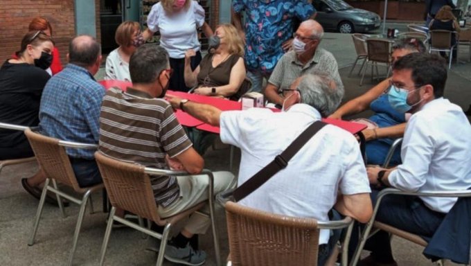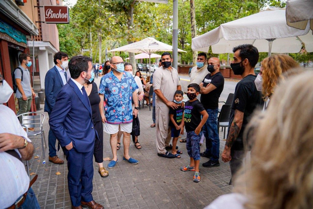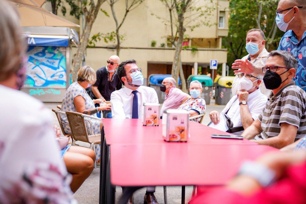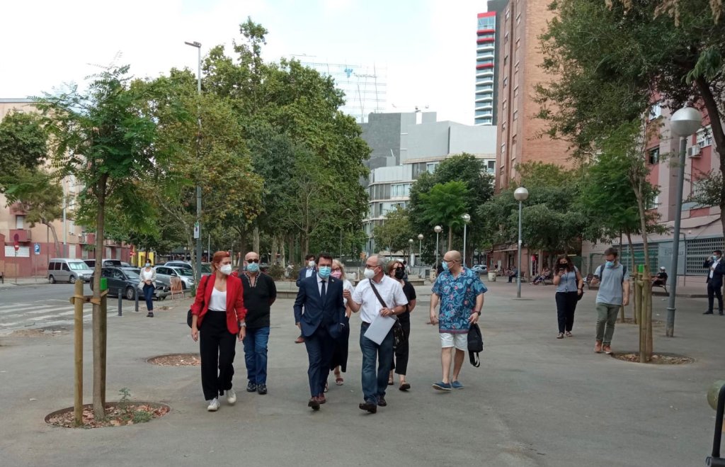 El President Aragonès va fer un petit recorregut pel barri, acompanyat de representants de l’Associació de Veïns. Se’l va posar al corrent de les problemàtiques socials sobre les quals fa temps que es reclama l’atenció de les administracions. Desprès d’aquest recorregut, va acabar assegut en la taula d’una terrassa d’un bar on va sentir diverses entitats i plataformes que lluiten per temes sectorials, escoltant arguments i problemes que té el veïnat i demanant-li que la política arribi al barri per resoldre els problemes que té. Entre les respostes que va donar el president hi ha la idea d’activar la llei de barris amb criteris de cohesió social.