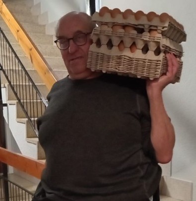 Rafael Vázquez García ha pasado más de 40 años vendiendo huevos en el barrio. Comenzó por necesidad tras una regulación laboral. Sin embargo, sus ventas han disminuido debido a los supermercados y al reparto a domicilio, y teme que su oficio desaparezca pronto. Afirma que no hay diferencia en la calidad entre los huevos rubios y blancos, y agradece el apoyo de los vecinos.