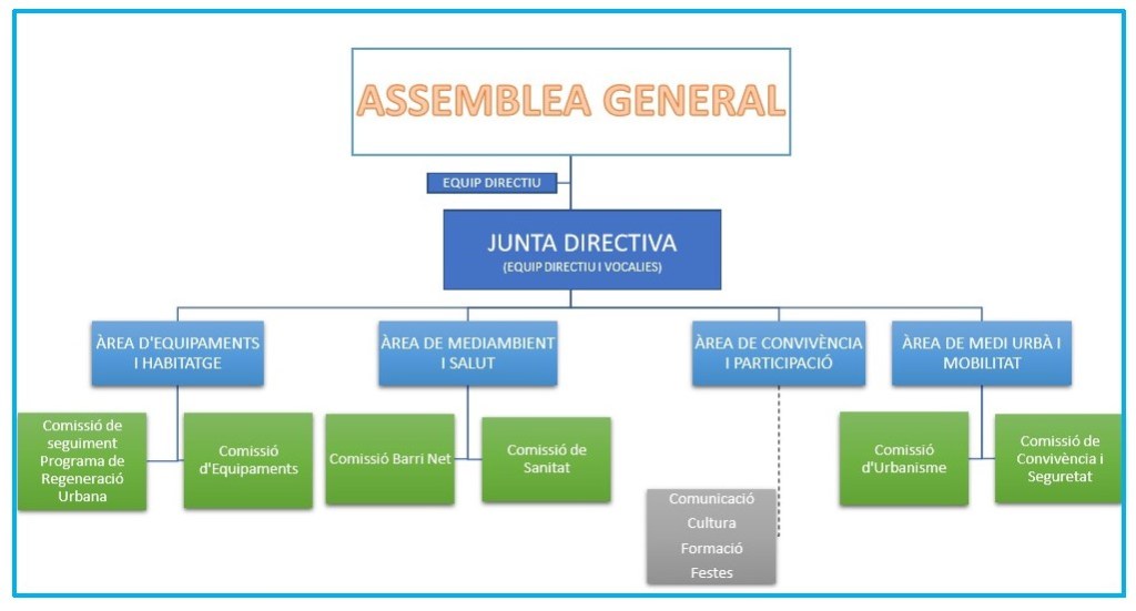 Formada per l’equip directiu i pels representants de les diferents àrees. Encarregada de la gestió del dia a dia de l’Associació entre assemblees. Està oberta a la participació dels socis i sòcies.